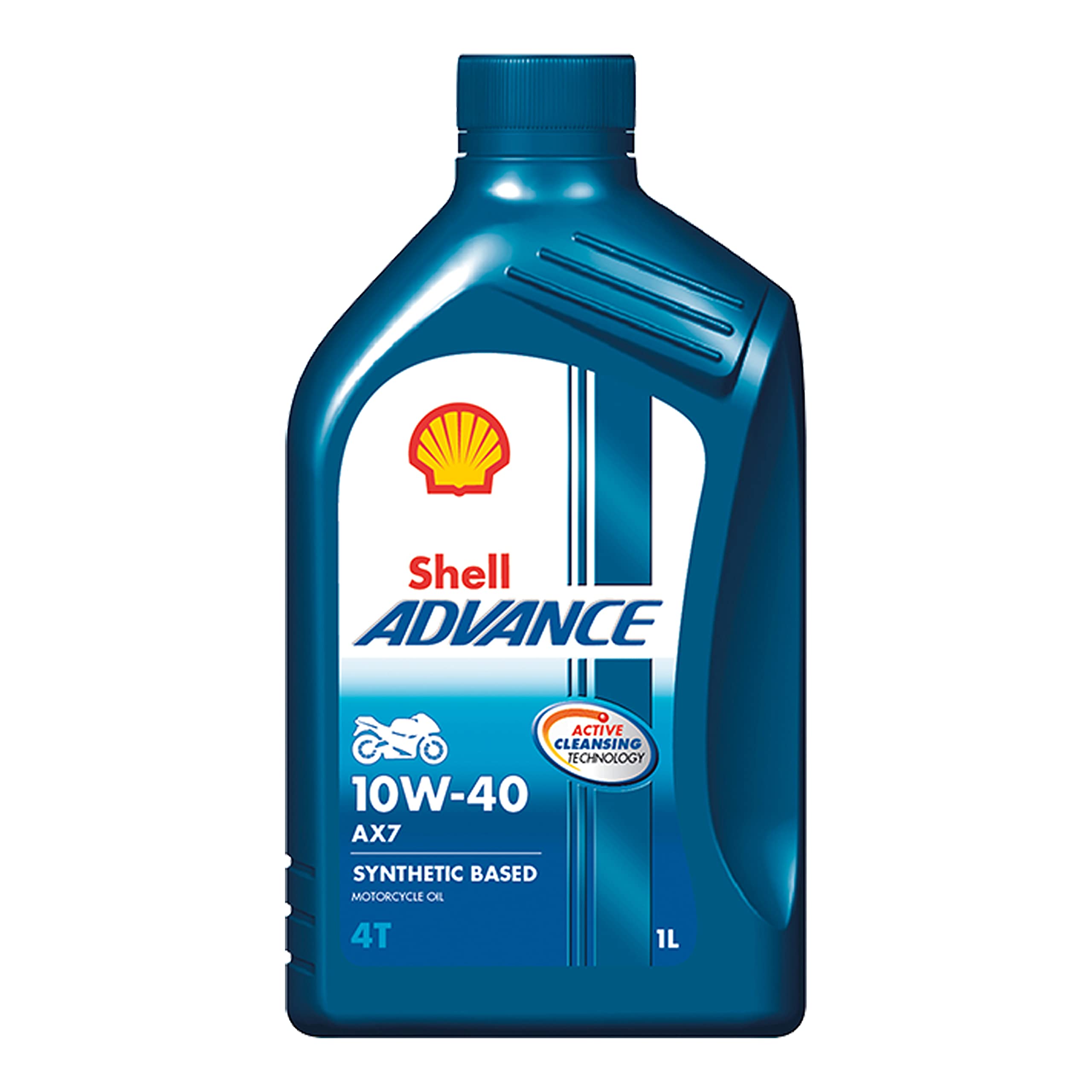 Shell Advance AX7 10W-40 semi-synthetic motorcycle oil. JASO MA2, API SL.